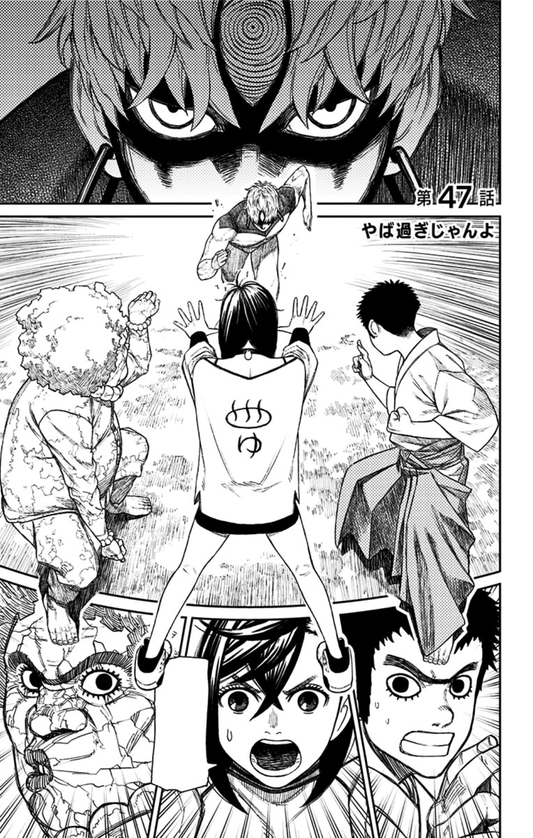 That's, Like, Way Deadly (やば過ぎじゃんよ Yabasugi jan yo?) is the forty-seventh chapter of the Dandadan manga series.