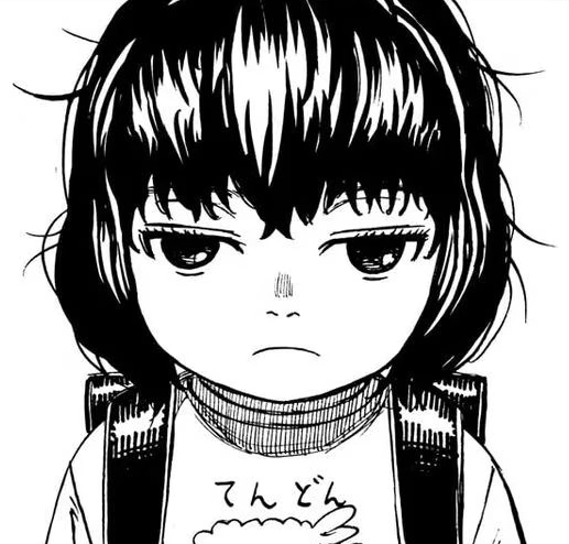 She is a young girl with dark, messy, medium-length hair. She wears a plain long-sleeved shirt with the text Tendon (てんどん Tendon?), an abbreviation for "Tempura Donburi", a rice bowl dish of tempura placed on top of rice and topped with sauce, which is featured at the center of her shirt. She also wears a slightly grey long skirt and carries her school's completely dark backpack. She usually keeps a distant and disinterested look.