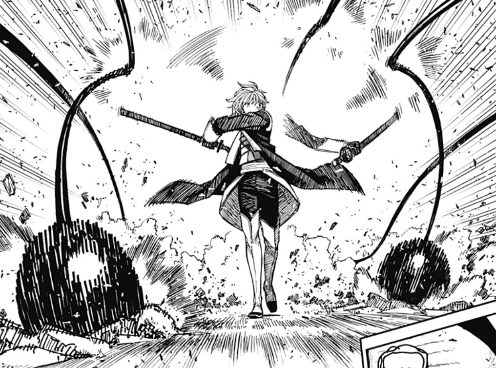 Immense Speed & Reflexes: Count Saint-Germain possesses tremendous speed and reflexes, with his movements being so swift and powerful that he can knock back a few Renjaku high schoolers just by running past them. He then proceeded to instantly collect the paralyzing talismans on the black cloth used to help free the trapped victims of Danmara and place them on the heads of multiple mind-controlled Renjaku high schoolers without them noticing his presence to react. In his battle against the Fairy-Tale Card, Count Saint-Germain was remarkably fast enough to evade the yokai's oncoming bud strikes and simultaneously dodge attacks from a crowd of mind-controlled Renjaku high schoolers while on the move.