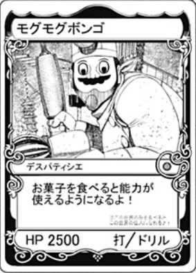 Death Pâtissier | The second boss after the Dark Knight is the Death Pâtissier who appears in the candy obstacle course. The way this stage is played when up against this boss is that players must come into physical contact with the candy the Death Pâtissier calls out to avoid getting hit by its attacks. The clear condition is to defeat the Death Pâtissier, which will earn players the Death Pâtissier card. | ||