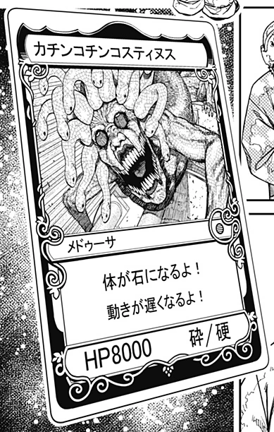 Rock-hard Costinus | Medusa: Players are able to turn their bodies into stone, increasing their defense against attacks at the cost of their mobility being reduced. | 8000 | Crush/Hard |