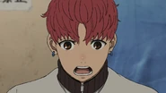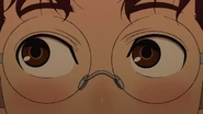 Before anyone can pour hot water onto Jiji, the Evil Eye generates his cursed house to block it and trap Momo's hands, rendering her unable to splash him with the hot water thermos to suppress him. Seiko attempts to penetrate the barrier with a talisman, but is repelled back. As the Evil Eye approaches her, Momo uses her psychic powers to push him away from her. In response, the yokai reduces the space of his cursed house to draw him closer to her and strangle her. At the last moment, Momo spits out the hot water she had been holding in her mouth, returning Jiji to his normal state. After Jiji apologizes to Momo, Okarun moves in to push him away to check on her. Seiko covers Jiji with a towel, assuring him the incident was not his fault. Jiji then notices both Seiko's burnt hand and the closeness between Okarun and Momo after the encounter. Later that night, Aira apologizes to Momo for the incident she accidentally caused but is reassured by her that it was nothing she should feel guilty about. In the boy's room, Okarun and Jiji face their sleeping bags away from the other, with Okarun clenching his fist.