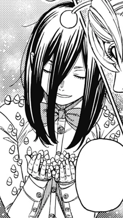 In Dandadan, she started out as a main antagonist during the first half of the Kozuka Knives Arc, having been threatened with blackmail by Murakami if she did not do his bidding in stealing Momo Ayase's powers.