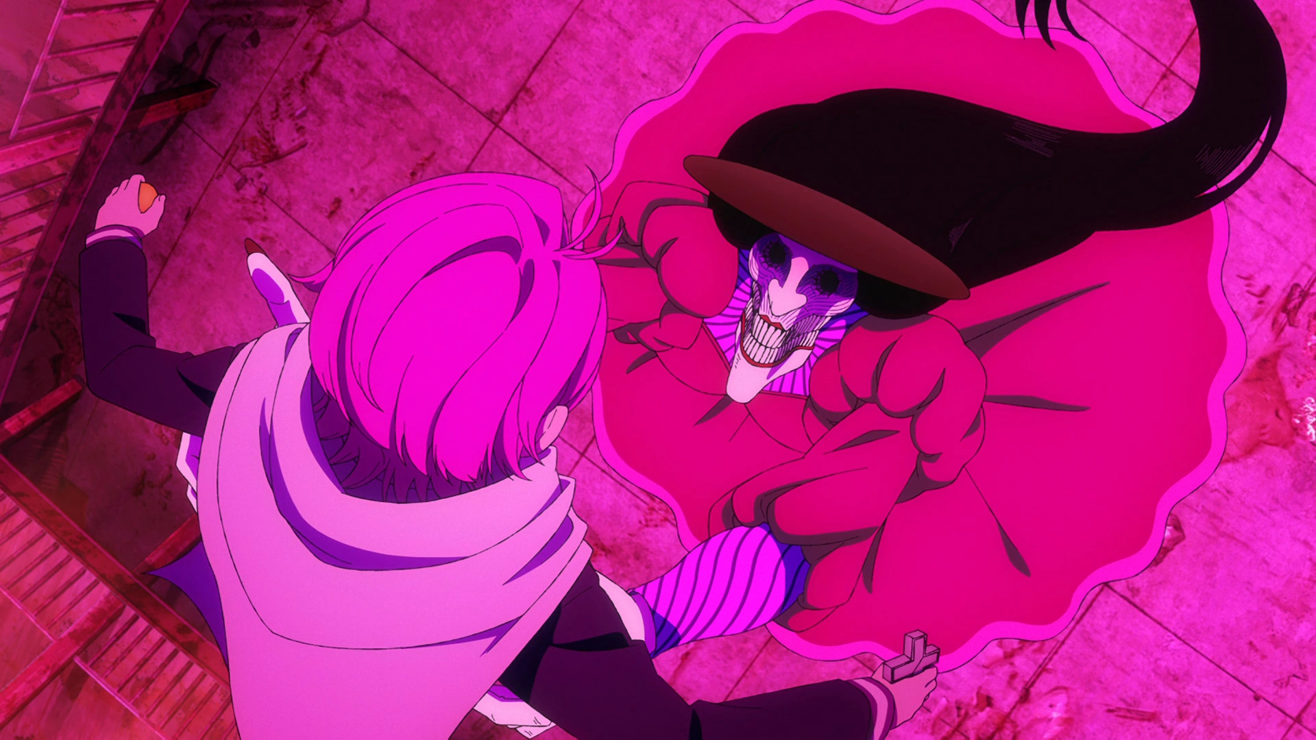 Instead of being stomped into the ground by Acrobatic Silky, Momo is kicked and launched into a wall. Later, while Momo and Okarun bicker to finish her off, she throws a steel beam in their direction which they barely avoid.