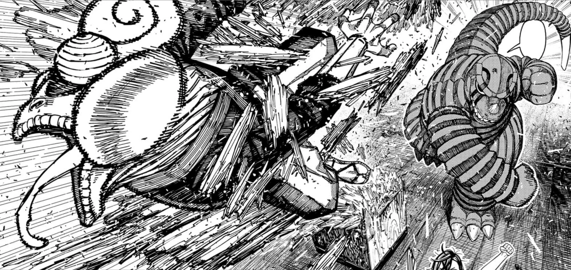 After Seiko directs Bamora to flee to the taxi outside, Momo objects abandoning her to confront their enemies alone. Nevertheless, Seiko is adamant, as this is their sole opportunity to break her granddaughter's curse. Seiko engages in combat, defending against the ninjas to create a clear route. Refusing to let them escape, Reptilian manipulates the wooden planks to obstruct the exit and opens the floor beneath Bamora, causing her to drop to the lower level. Momo reacts immediately, using her abilities to catch Bamora, but ultimately falls with her and becomes trapped.