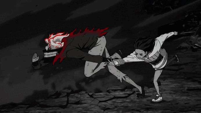 - Okarun's first name and white hair and black mouth mask when using Turbo Granny's power draws reference to Ken Kaneki from the series Tokyo Ghoul. The two also coincidentally share the same Japanese voice actor Natsuki Hanae.