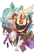 Volume 7 Cover with Aira in Acrobatic Silky form and Okarun in Turbo Granny form.