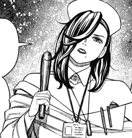 After being sent to Empty Space, Queen observes from outside her office as Koki is pursued by Kinta on his nanoskin hoverboard. She intervenes with her baton, striking him down under the impression that he, Jiji, and Bamora are bullying her.[1] Queen takes Koki's word in that the members of the History and Culture Research Club assaulted her together and demands for the culprit who hurt her to present themselves. Jiji and Bamora counters Koki's claim, telling Queen that Koki was the one who assaulted Momo. While Koki denies these allegations, Queen examines her injuries and highlights the inconsistencies between her current explanation and her earlier assertion of not knowing Jiji and being outnumbered, despite having the support of the pygmies she is clearly able to see, which surprises Momo as she believed only herself and Koki could. Queen explains to Koki that through her student's consulting with her on spiritualism she has come to see spirits and promises not to judge her until she confesses the truth. Touched by Queen's words, Koki confesses to attacking Momo and offers an apology. Angry with her for pretending to be the victim, Queen becomes prompted to slap Koki and is held back by Jiji and Bamora from assaulting her any further.[2]
