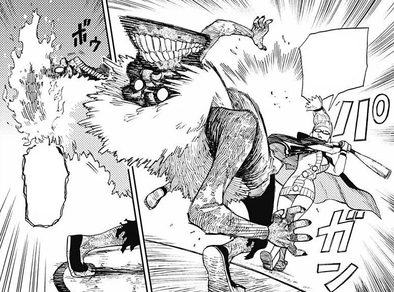 Noticing the threat grabbing Momo to eat her, Seiko throws a brick with a nail stuck into it at the center of a drawn circle. Upon landing, the brick explodes and Turbo Granny bursts into flames, rolling down into the small canal behind her. As she approaches her with her bat, she's surprised that her granddaughter has brought another trashy boy home again and challenges the yokai to a duel. In a mere instant, Turbo Granny flashes behind her and tries to chomp her head off, but she's repelled by the barrier Seiko is in, igniting once again and fell backwards. Seiko was shocked at her speed, but she had expected it and she had placed a trap behind her, causing Turbo Granny to get stuck inside the barrier.