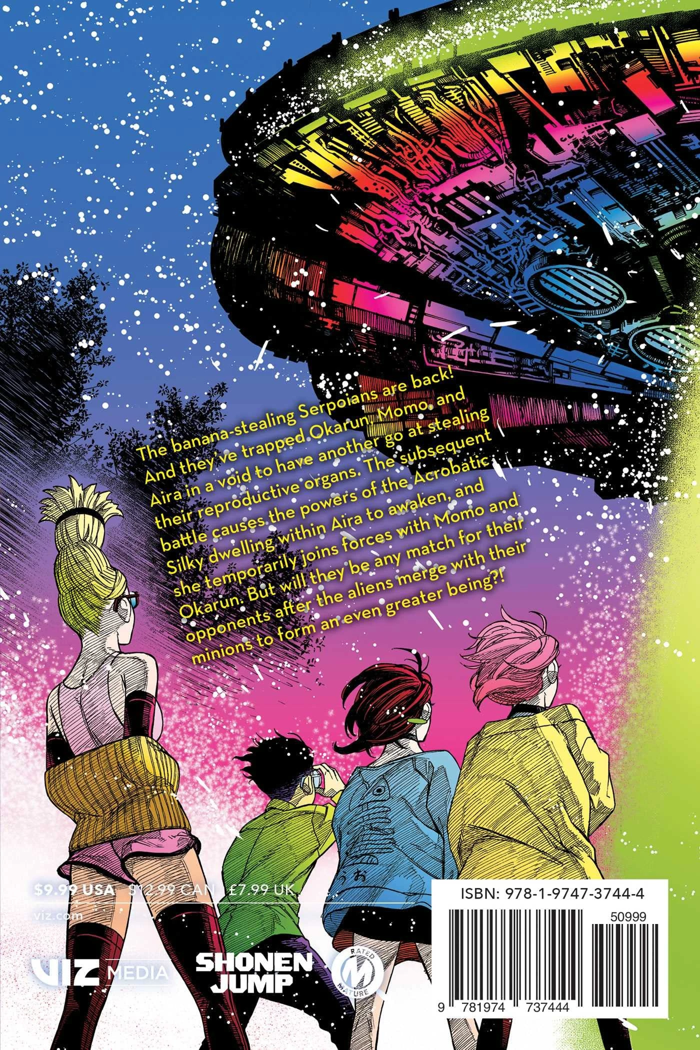 The banana-stealing Serpoians are back! And they’ve trapped Okarun, Momo, and Aira in a Empty Space to have another go at stealing their reproductive organs. The subsequent battle causes the powers of the Acrobatic Silky dwelling within Aira to awaken, and she temporarily joins forces with Momo and Okarun. But will they be any match for their opponents after the aliens merge with their minions to form an even greater being?!