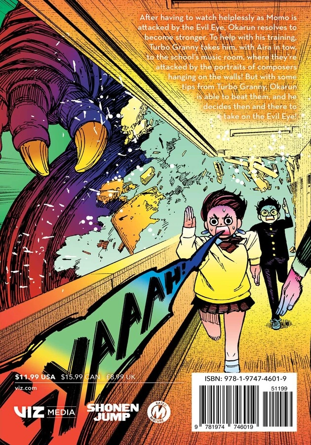 Okarun watches helplessly as Momo is attacked by the Evil Eye and resolves to become stronger. To help in his training, Turbo Granny takes him, with Aira in tow, to the school’s music room, where they’re suddenly attacked by the portraits of composers hanging there! But with some hints from Turbo Granny, Okarun is able to beat them, deciding right then and there to take on the Evil Eye!